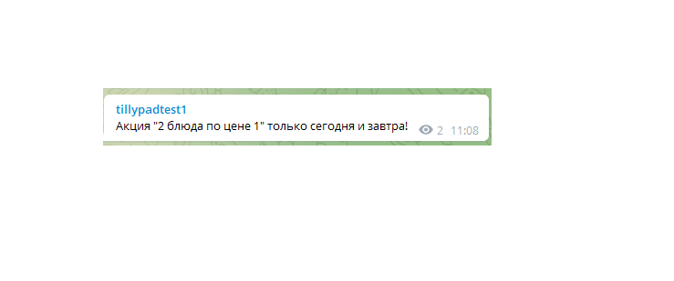 Данный функционал отправляет сообщения в указанный канал системы Telegram, на который подписаны клиенты заведения.